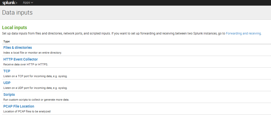 With this configuration a new folder will be created automatically at “$SPLUNK_HOME/etc/apps/SplunkForPCAP/”. It is the “local” folder which includes an “inputs.conf” file.